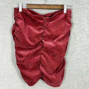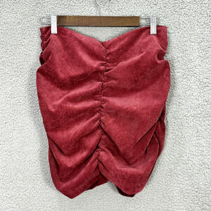 Zara Women Large Dusty Pink Corduroy High Rise Ruched Draped Mini Skirt Boho Y2K