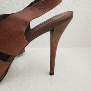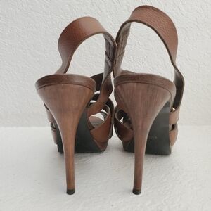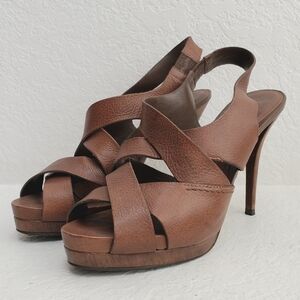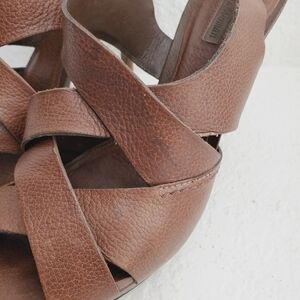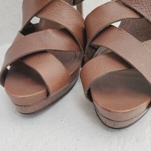 Zara Women Leather Wooden Heal Platform Strappy Sandal Shoes Brown in wonderful condition. Light wear on leather and soles. See pictures for details and ask any questions.