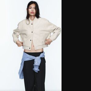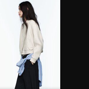 Zara Women Light Beige Heather Soft Bomber Jacket Size XXL NWT