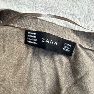 This Zara cardigan, crafted from a soft rayon blend, offers a chic and cozy addition to your wardrobe. Its longline design and versatile taupe hue make it an ideal layering piece for cooler days. The cardigan's button-down front and dual pockets combine fashion with function, elevating your everyday style.