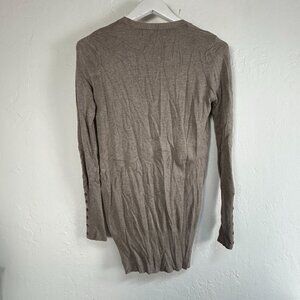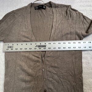 Zara Women Long Taupe Button-Down V-Neck Cardigan Sweater Medium Pockets Casual