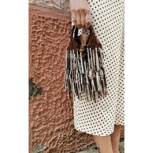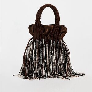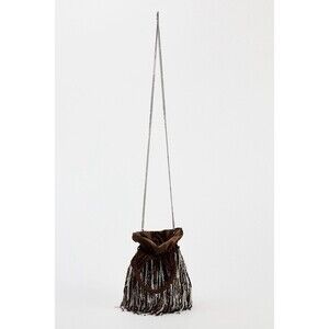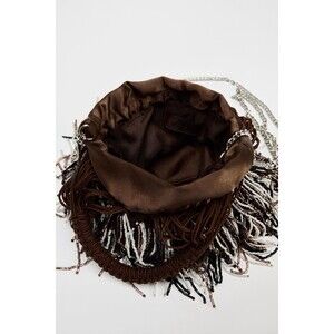 Zara Women Mini Beaded Fringe Bucket Bag Brown 6619/310 New