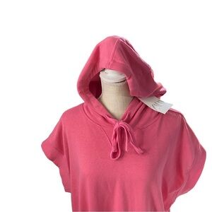 Zara Women Pink Short Sleeve Hooded Sweatshirt Sz L Cotton Swimsuit Cover Up NWT
