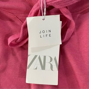 Zara Join Life Women’s Pink Short Sleeve Cotton Long (35”) Hooded with Drawstrings Sweatshirt Oversized Sz Large Swimsuit Cover-Up Mini Dress. This sweatshirt is new with tags.