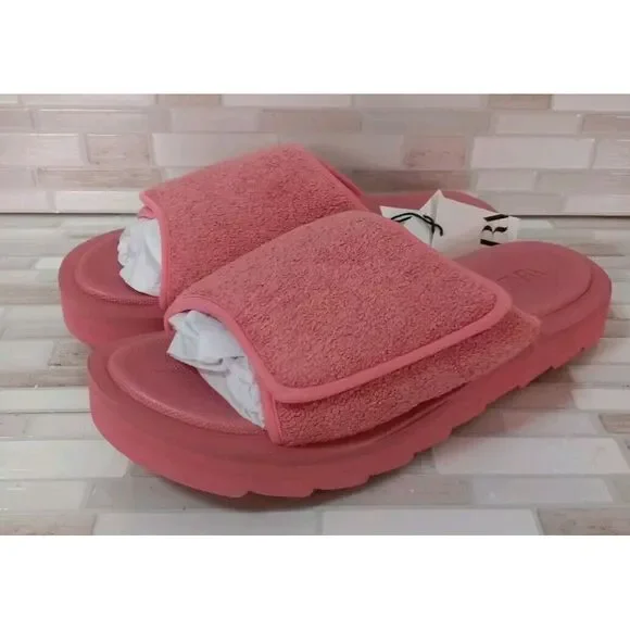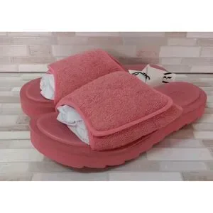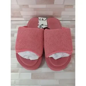 Zara Women Pink Terry Cloth Fastner Slip On Chunky Slip On Sandals Size 11