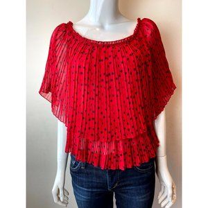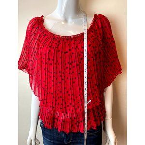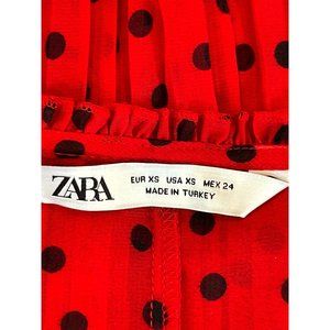 Zara Women Pleated Off Shoulder Blouse Top Polka Dot Red Black Size X Small