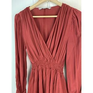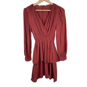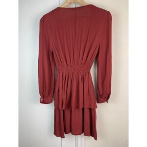 Zara Women S Burgundy Deep V-Neck Tiered Elastic Waist Mini Dress
