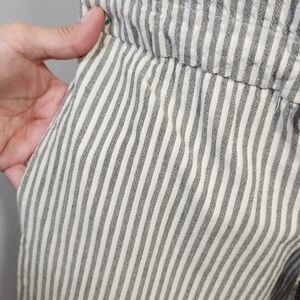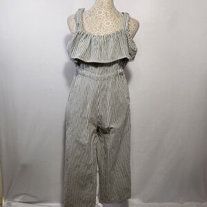 Zara Women Size XS Jumpsuit Gray Stripe Ruffle Drawstring Waist Tassel Tie Strappy Wide Leg Pockets Casual Boho Girl Core Breathable Blemish Left Thigh Overall In Gently Pre-Owned Good Condition Reasonable Offers Welcome