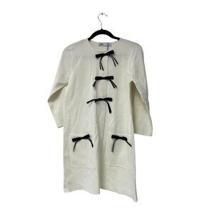 Zara Women Short Knitted Dress Medium White Bow 3/4 Sleeves Pockets 2142/201 NWT