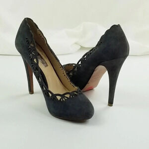 Zara Women Size 38 (US 7.5-8) Blue Suede Lazar Cut Slip On Closed Toe Pumps