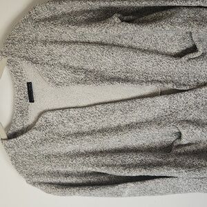 Zara Women Size M White Black Long Sleeve Cotton Open Front Cardigan Sweater