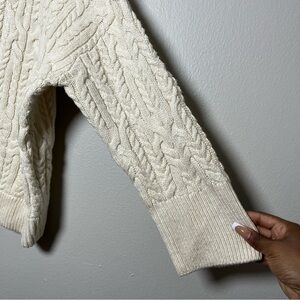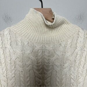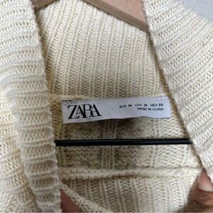 Zara Women Sweater Medium Cable Knit Fisherman Cream Coastal Vanilla Turtleneck