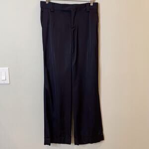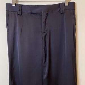 EUC Womens Zara Tailoring Wool Stretch Trousers Satin Pants Navy Blue 8 US