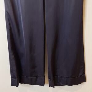 Zara Women Tailoring Wool Stretch Pants Satin Slacks Office Navy Blue 8 40 FLAW