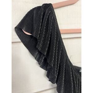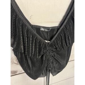 Zara Women Top Large Black 100% Polyester Plunge V Neck Ruffle Crop Fit Tank NWT