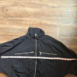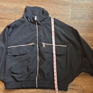 This Zara black track suit include a cropped bomber jacket and cargo pants. It offer a modern streetwear look with their high-waisted design and elastic cuffs. has multiple zippers and pockets. Crafted for comfort and style, they feature a relaxed fit and a solid matte finish, making them a versatile addition to any wardrobe.