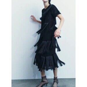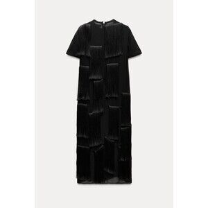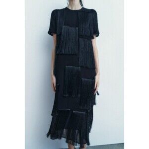 Zara Women ZW Collection Fringed Midi Dress Black Size Large 6895/262