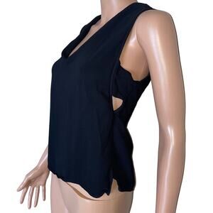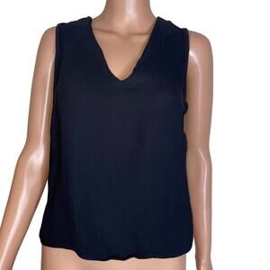 Zara Women basic top blouse sleeveless black V-neck SZ SM Staple piece Career