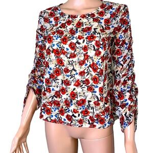 Zara Women blouse top floral print white red Premium Denim Collection Flowy SZ M