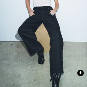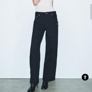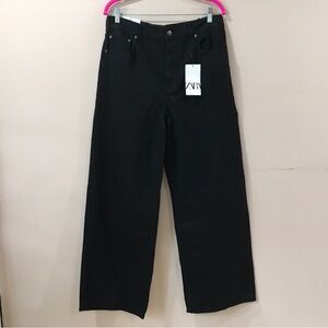 Zara Women jeans The Mid Rise Loose Fit Black Denim Wide Leg 10/32 New 8246/259