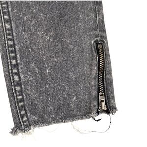 Collection. Skinny jeans with zippered ankles and raw hem. Jeans state size 2. Color is Gray/ Black. Manufacturers Distressed marks throughout. Color may vary due to camera lighting. Normal wear throughout.
