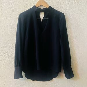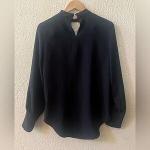 Zara Women Choker Cut-out Blouse Sz S-M Black Flowy High/Low Hem Minimalist