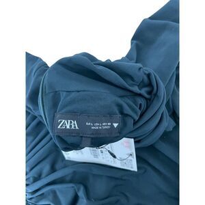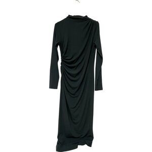 Zara Women Maxi Dress L Dark Gray Ruched Asymmetrical Long Sleeve 3067/270 NWT