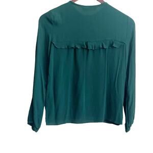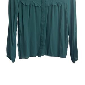 Zara WomenPleated Ruffle Top XS Forest Green Sheer Button Up Fairy Whimsy Boho