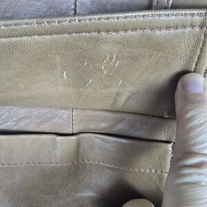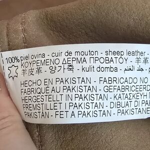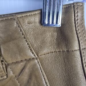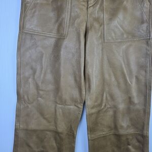 Zara Women's 100% Sheep Leather Camel Cargo Pants Straight Leg Size S. There are some marks and small stains on the pants. there is also some wear under the back oocket flap. I tried to show most of the damage in the pictures, so look closely. Still in really good shape.