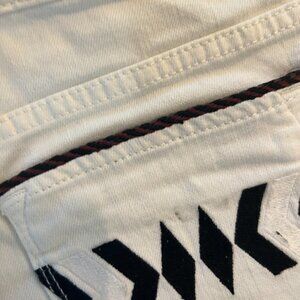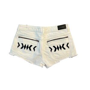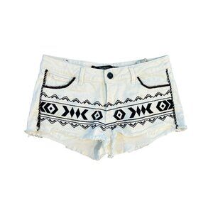 Zara Women's 2 Shorts Embroidered Boho Aztec Raw Hem White Black Denim