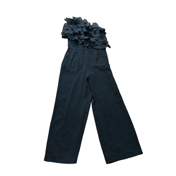 Zara Women's ASYMMETRIC RUFFLED JUMPSUIT Black Large
