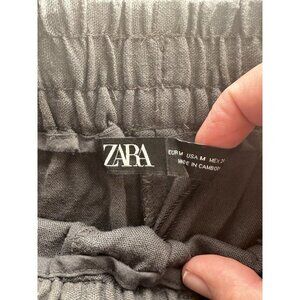 Zara Womens Anthracite High Waist Drawstring Linen Blend Shorts Size M Cottage