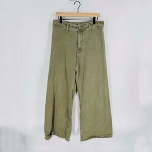 Zara Women’s Army Green Denim Sailor Pants Size 14 Wide Leg Raw Hem