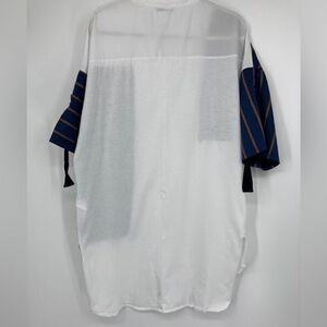 Zara Women’s Asymmetrical Pattens/Asymmetrical Length Long Shirt/Mini Dress White/Blue/Brown Color Adjustable Sleeve 100% Cotton Very Comfy Size M Approximately Measurement:Pit 23”/Shoulder to Hem 38” Excellent Condition