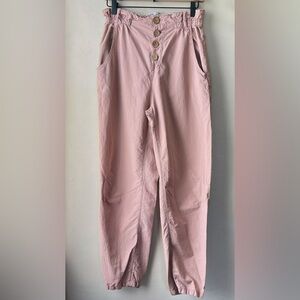 Zara Women's Baggy Rustic Paperbag Lightweight Pants Dusty Pink Button Fly Sz 2