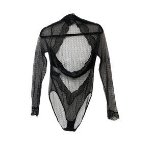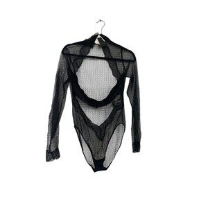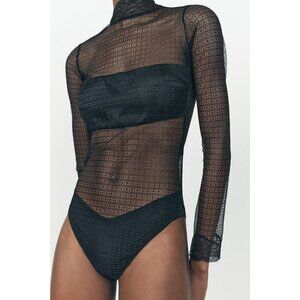 Zara Womens Bandeau Bodysuit Large Black Semi-Sheer High Neck 9014/025 NWT