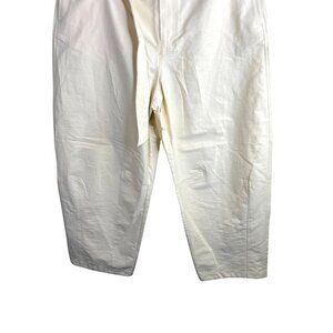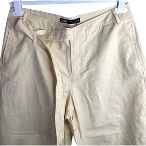 Zara Womens Barrel Leg Cream Cotton-Blend High-Waisted Pants Size Medium
