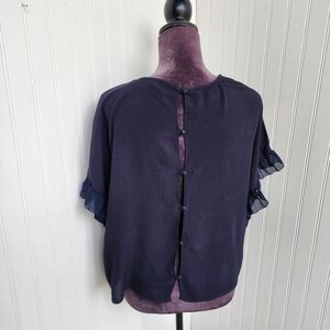 Zara Women's Basic Collection Stretch Navy Flutter Back Buttons Blouse Top Sz S