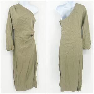 Zara Womens Beachy Blogger Favorite Linen Blend Asymmetric One Shoulder Dress in Olive Green. Size medium.