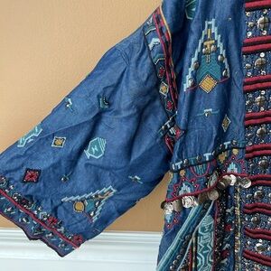 Zara Women's Beaded Fringe Boho Kimono Jacket Embroidered Oversized Small Boho