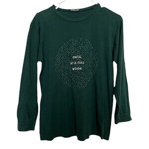 Zara Womens Beaded T Shirt Long Sleeve Tee Top Once at a Full Moon Small Green