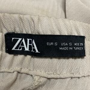 Zara Women's Beige High Waisted Pleated Drawstring Tapered Trousers Pants Size S