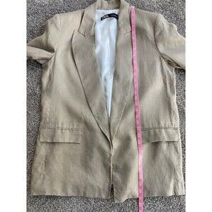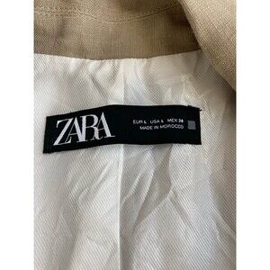 Zara Women’s Beige Linen Blazer Size Large – Relaxed Fit, Made in Morocco