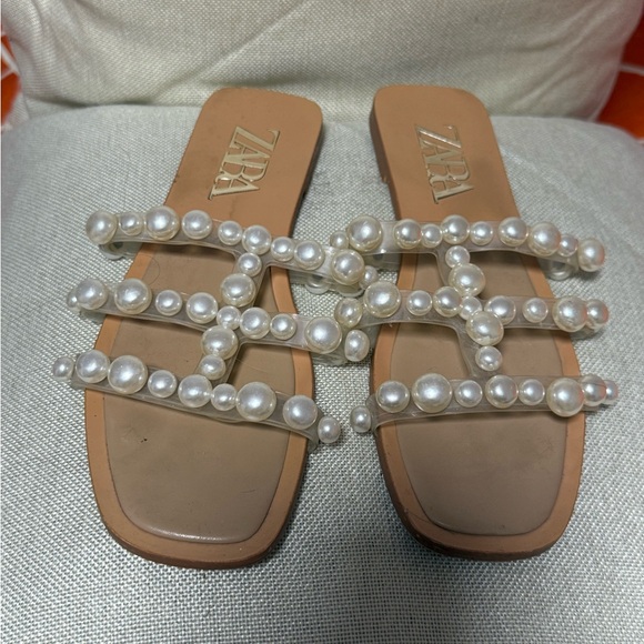 Chic Zara sandals with elegant pearl accents. Perfect for stylish outings.