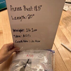Across Bust: 18.5 inches, Length: 20 inches