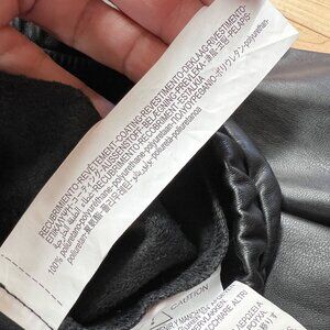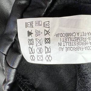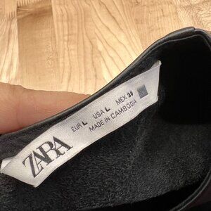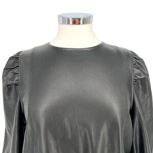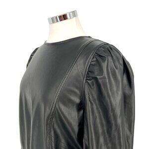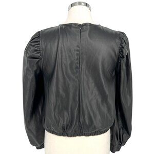 Zara Womens Black Faux Leather Long Puff Sleeve Drawstring Top Size Large