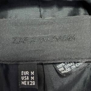 Zara Women's Black Faux Vegan Leather Belted Collar Trench Coat Rain Jacket Size M
