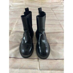 Zara Women's Black Flat Chelsea Classic Ankle Boots Pull On - 38 (US 7.5)