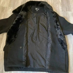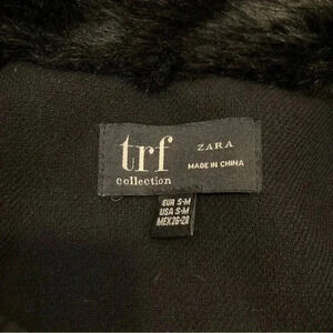 Zara Women's Black Fur Lapel Coat/Jacket Size S/M Boxy Fit Front Pockets