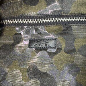 Zara Women’s Black & Green Camouflage Print Nylon Interior Pocket Tote Bag